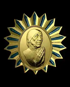 The "Mother Teresa" Decoration is an honorary decoration of the Republic of Albania given to Albanian and foreign citizens for outstanding acts of humanity towards the Albanian nation and the world. The decoration is given by the President of Albania.[2][3] The proposer could be the President or institutions of authority (Prime Minister, Assembly, Ministries, independent bodies, etc.).[4] The Mother Theresa award is considered the highest award in Albania.