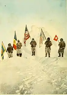 Although the film's story is treated in a vein of fantasy, it took much of its inspiration from current affairs. Robert E. Peary and his team had set foot on the North Pole on 6 April 1909, and Roald Amundsen had made it to the South Pole on 14 December 1911, four months before Méliès started filming.[1] The claims of the rival explorer Frederick Cook, who tried unsuccessfully to prove that he had beaten Peary to the North Pole, were also a thematic inspiration.[2] Méliès later recalled: