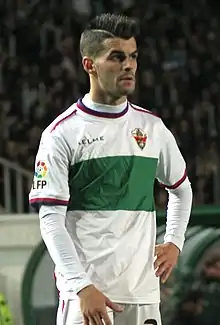 On 18 August 2015, Martínez was loaned to Elche CF in a season-long deal.[8] Upon returning to the Estadio Benito Villamarín, he acted mainly as a backup to new signing Riza Durmisi.[9][10]