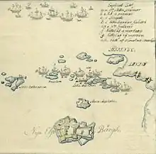 From the Aspholmar, the Danish-Norwegian artillery could subject New Älvsborg to a heavy bombardment. The fortress suffered continuous fire for three days without pause, causing significant damage.[15] Lillie nevertheless refused to surrender, responding to the Danish-Norwegian calls for surrender with that he "would rather be brought back to Gothenburg as a dead Lillie than as a living Danckwardt", referring to the late Henrich Danckwardt, who had been convicted of cowardice by a Swedish court-martial for surrendering Marstrand and executed.[16]
