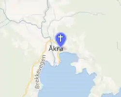 Åkra Church (Norwegian: Åkra kyrkje) is a parish church of the Church of Norway in Kvinnherad Municipality in Vestland county, Norway. It is located in the village of Åkra. It is the church for the Åkra parish which is part of the Sunnhordland prosti (deanery) in the Diocese of Bjørgvin. The white, wooden church was built in a long church design in 1735 using plans drawn up by an unknown architect. The church seats about 225 people.[1][2]