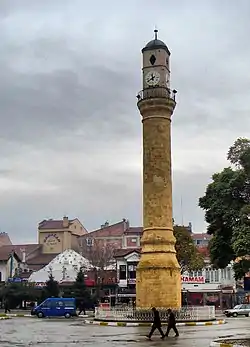 Çorum Clock Tower is a clock tower in the Central district of Çorum province, Turkey. It was built either in 1894[1] according to Çorum Provincial Culture and Tourism Directorate and Meltem Cansever, or in 1896[2] according to Hakkı Acun. Built by Seven-Eight Hasan Pasha, the tower is 27.5 metres (90 ft) high and 3.9 metres (13 ft) in diameter.[3]