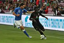 Eder's first international goal came on his 18th cap, the only goal in a friendly defeat of Italy at the Stade de Genève on 16 June 2015.[46] He was selected by Fernando Santos for his UEFA Euro 2016 squad,[47] appearing in three matches as a substitute and scoring the only goal in the final to help defeat hosts France after extra time.[48][49][50]
