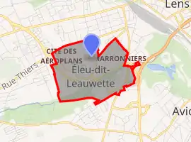 A suburban township, situated just 1 mile (1.6 km) south of the centre of Lens, at the junction of the D55, D58 and the A211 autoroute.