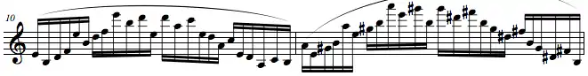 accentuating those notes indicated by additional quaver (eighth note) tails. This serves to emphasize the underlying quartal rhythm to further accentuate the march-like theme of the left-hand.[2] Although this analysis may be sound, the performance of this without the aforementioned implications detracts nothing from the rhythmic undulations of the chromatic scales. Abby Whiteside agreed with this subdivision, calling them "tonal patterns which have to be solved before this Etude is playable."[4] Citing her usual procedures of promoting arm strength, she emphasized two key points exemplified by this étude: "notewise procedure does not further bravura playing" and "finger technique is simply not adequate for brilliance and speed." Her dissertation states that this work is impossible without the aforementioned subdivision, and simultaneously advocates her arm technique.[4]