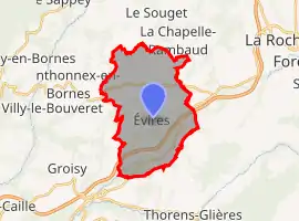 Évires (French pronunciation: [eviʁ]; Arpitan: Évire) is a former commune in the Haute-Savoie department in the Auvergne-Rhône-Alpes region in south-eastern France. On 1 January 2017, it was merged into the new commune Fillière.[2]