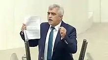 At the parliamentary elections of 24 June 2018, he was elected to the Turkish Grand National Assembly (TBMM) representing Kocaeli for the People's Democratic Party (HDP).[32] He is a member of the Parliamentary Commission of Human Rights Inquiry.[3] He draws attention to human rights violations and campaigns to improve the rights of Kurds, prisoners and people who have been purged after July 15, 2016 coup attempt. In January 2018, he signed a petition against Turkey's Operation Olive Branch against Afrin, Syria.