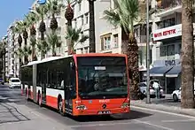 The ease of access to the town makes the administration of several shuttle buses and share taxis by the province and from central İzmir to Özdere and its beaches possible. Dolmuş and coach buses also operate from the İzmir bus station and from other nearby towns such as Kuşadası and Seferihisar. The town can be reached from the İzmir Adnan Menderes International Airport, where rental car services and taxis can be used to the reach the town center, its neighborhoods, and nearby areas.[10][11] Ferry and yacht services can be found at several harbors within and near town.[7][9]