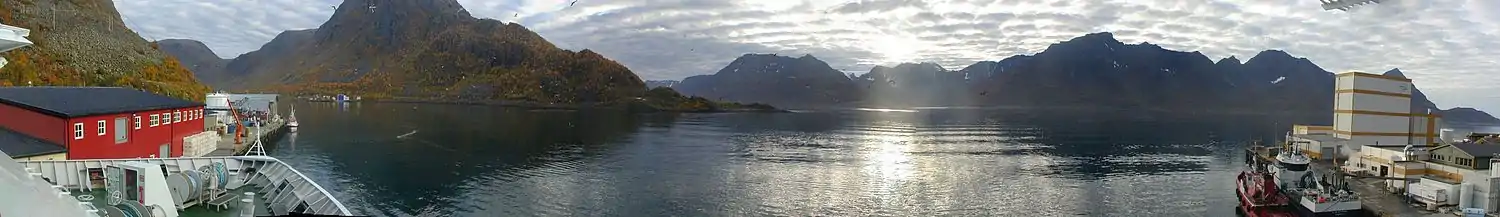 Øksfjord is visited by the costal serviceHurtigruten boat daily, stopping here between stops at Skjervøy and Hammerfest. Since most of Loppa municipality is inaccessible by car, Øksfjord is a major transportation hub with regular car ferry connections to the Nuvsvåg, Bergsfjord, and Sør-Tverrfjord areas. There is also a regular ferry connection from Øksfjord to the village of Hasvik on the neighboring island of Sørøya in Hasvik municipality.