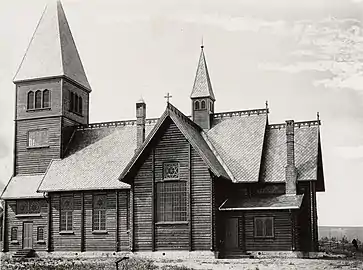 In 1901, the municipal council of Vang began planning for a new annex chapel in the northern part of the municipality. Architectural drafts were designed by Johan Joachim Meyer and later when Meyer was ill, the plans were modified by Andreas Bugge who moved the tower to above the west entrance rather than over the centre of the nave as had first been planned. The church was built from 1903 to 1907. The chapel is a half-timbered cruciform building, but the cross-arms are quite short and the interior is laid out as if it were a long church. The chapel has a west tower above the church porch, a choir in the east, and sacristies on each side of the choir. The new building was consecrated on 28 August 1907 by Bishop Christen Brun. The chapel was originally named Vangsaasen kapell (later it was renamed Øvre Vang kapell). More recently, the chapel was upgraded to parish church status so that the parish of Vang has two churches now.[3][4]