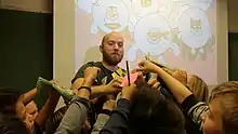 Øystein Runde (born December 14, 1979 in Ulsteinvik) is a Norwegian comics writer and comics artist.[1] Runde, Kristopher Schau and Frode Hanssen published the weekly science/humor podcast 80% from 2019 to 2020, after its end in october 2020 when Schau moved to Drammen, Runde started an english-language science podcast called Wunderdog, where he talks to "the scientists behind the ideas". Guests so far have been professor Philip Lubin who invented the concept for Stephen Hawking and Yuri Milners "Breakthrough starshot" laser, professor Robin Hanson who invented the term "The Great Filter" and wrote Age of Em about mind uploads, doctor Cynthia Phillips from NASA, staff scientist for the Europa Clipper project.