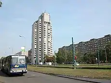 104 panel buildings (5, 7, 11, 13 and 15-storey blocks) were planned for the area, containing 14,105 flats with an average floor space of 52.6 m2 (566 sq ft) (including one-, two-, three- and four-bedroom apartements).[2] According to Tibor Tenke, the architect of the housing estate, the original plan was revised to increase the number of flats to 15,560.[1] Construction was by the BHK III. (3rd Housing Factory of Budapest) using Soviet-Hungarian technology,[3] and was completed in 1978.[1]