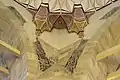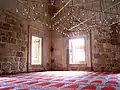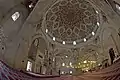 The two blue and turquoise underglaze-painted tile panels in the tympana of the windows were probably produced by the same group of tilemakers who had decorated the Yeşil Mosque (1419–21) in Bursa where the tiles are signed as "the work of the masters of Tabriz" (ʿamal-i ustadan-i Tabriz). The running pattern of the Chinese influenced floral border tiles is similar to those in the small Muradiye Mosque in Edirne.[6][7]