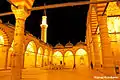 The Üç Şerefeli Mosque is one of the most important mosques of this period of early Ottoman architecture.[3][4] It has a very different design from preceding mosques. The floor plan is nearly square but is divided between a rectangular courtyard and a rectangular prayer hall. The courtyard has a central fountain and is surrounded by a portico of arches and domes, with a decorated central portal leading into the courtyard from the outside and another one leading from the courtyard into the prayer hall. The prayer hall is centered around a huge dome which covers most of the middle part of the hall, while the sides of the hall are covered by pairs of smaller domes. The central dome, 24 meters in diameter (or 27 meters according to Doğan Kuban[9]), is much larger than any other Ottoman dome built before this.[2] On the outside, this results in an early example of the "cascade of domes" visual effect seen in later Ottoman mosques, although the overall arrangement here is described by Sheila Blair and Jonathan Bloom as not yet successful compared to later examples.[3] The mosque has a total of four minarets, arranged around the four corners of the courtyard. Its southwestern minaret was the tallest Ottoman minaret built up to that time and features three balconies, from which the mosque's name derives.[10] The mosque was heavily damaged by an earthquake in 1752 and partly reconstructed.[11]