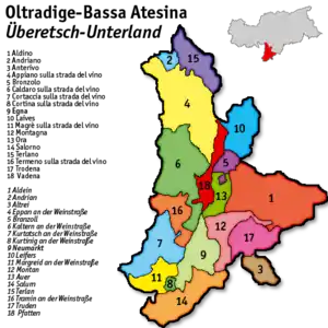 ![]() Überetsch-Unterland district (highlighted in green) within South Tyrol | |