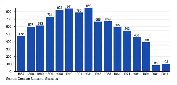 According to the 1991 census,[3] 92.56% of the village population were ethnic Serbs (361/390), 6.41% were ethnic Croats (25/390), 0.77% were Yugoslavs (3/390), while 0.26% were of other ethnic origin (1/390).