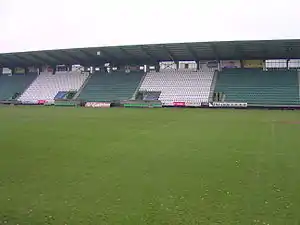 Ďolíček Stadium is a multi-purpose stadium in Prague district Vršovice, Czech Republic. It is currently used mostly for football matches and is the home ground of Bohemians Praha 1905 and FK Pardubice. The stadium was opened on 27 March 1932 for a match against SK Slavia Prague.[2] The reconstruction of 2003 changed the capacity to 13,388 (3,028 seated). After reconstruction in summer 2007, its capacity was reduced to 9,000 (3,800 seated). Bohemians 1905 were not allowed to keep the stand sector, they changed it into seats, which reduced the capacity further, to 7,500 (all seated).