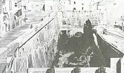 The summer residence and part of the garden was destroyed in the mid-19th century to make way for the Lascaris Battery, a casemated artillery battery which was built by the British military in order to defend the Grand Harbour, in particular the newly built drydock.[5] Eventually, case bottege began to be built on the remaining parts of the garden, and the site was fully built up as social housing blocks in the 1980s.[7]
