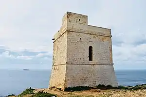 Ħamrija Tower (Maltese: Torri tal-Ħamrija), originally known as Torre della Pietra Nigra (Maltese: Torri tal-Ħaġra s-Sewda)[1] and also known locally as Torri ta' Rsejjen,[2] is a small watchtower in Qrendi, Malta. It was completed in 1659 as the twelfth of the De Redin towers. The tower was restored by Heritage Malta and it is now in good condition.