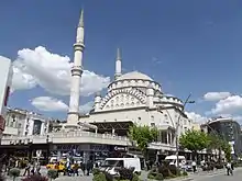 It is on Gazi Paşa boulevard of Elazığ.[1] The commissioner of the mosque was Hacı Ahmet İzzet Pasha, the governor of Elazığ during the Ottoman Empire era. It was completed in 1866. It was an abode structure and it could barely withstand aging in a century. In 1967 it was demolished by a İzvak, a foundation established to renew the mosque.In 1972 the mosque was rebuilt and was opened to service. The other dimensions of the mosque are 44 x 28.5 m2 (144 x 94 ft2). It also has two porticos with dimensions 8 x 28.5 m2 and 4 x 27.15 m2. The diameter of its dome is 20 metres (66 ft) It has two 55 metres (180 ft) minarets. The mosque also houses 115 markets in the ground floor built to provide revenue to sustain the mosque.[2]
