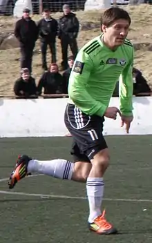 ![]() Łukasz Cieślewicz playing for B36 Tórshavn in 2012. | |||