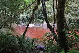 The river's color varies from tea-like shades of golden brown to red from the natural organic tannins released into the water by several of the plant species in the area. Leaves and other plant matter on the forest floor releases these tannins as they decompose – this eventually leeches into and stains the water, with the shade and intensity varying depending on rainfall and season.