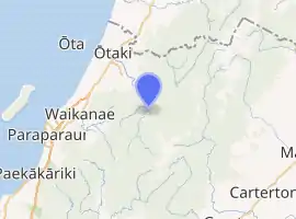 Ōtaki Forks is a rural locality in the Kapiti Coast District of the Wellington Region of New Zealand's North Island. It is located at the confluence of the Ōtaki River with its tributaries Waiotauru River and Waitatapia River. It is 18 km southeast of Ōtaki by road.[3] It is the major entrance to the Tararua Forest Park from the west.[4]
