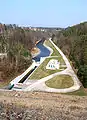 On the Malše River just above the village there is a reservoir providing drinking water for large portion of South Bohemia. The dam, completed in 1978, is 47.5 metres (156 ft) high and 290 metres (950 ft) long at crest. It has a volume of 33.8 million m³.[3]