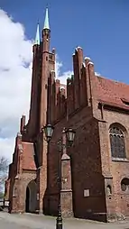 The center of Świebodzin still contains remnants of the town's past as a medieval walled settlement, including two nearly intact towers and fragments of the town's defensive walls and bastions. The central market square is dominated by the town hall, built around 1550 in the renaissance style and rebuilt in the 19th century with the addition of its prominent clock tower. The town hall still contains its original gothic vaults in the rooms of the Regional Museum and basement cafe. There are two large churches in the town center, the Church of St. Michael the Archangel and the Church of the Mother of God. The Church of St. Michael was first built in the second half of the 15th Century, and its neo-gothic façade was added in the second half of the 19th century. The neo-gothic Church of the Mother of God was built during the Imperial German period as a Protestant Church but was reconsecrated as a Catholic Church after World War II.