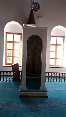 The mosque is a square-plan mosque each side being 14.5 metres (48 ft). Its nartex to the north is supported by 8 wooden columns. There are 16 windows in the main hall.[2] In 2018 the mosque is restored by the governorship of Muğla.