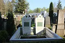 The mosque took its name from the Turkish cemetery, which was laid out as a diplomatic cemetery back in 1866. Among the graves of honor there are those for the Armenian genocide perpetrators Cemal Azmi and Bahattin Şakir, which was criticized by Kurdish-German politician Giyasettin Sayan in 2005.[3]
