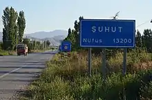 Şuhut (Ottoman Turkish شهود Şuhūd;[3] formerly Ancient Greek Σύνναδα Synnada) is an ilçe (district) in Afyonkarahisar Province in the Aegean region of Turkey, and also the capital of that district. It lies in a small plain, 29 km east of the city of Afyon. It has an area of 983 km², and the population (2000) is 39,421 of which 12,625 live in the town of Şuhut, and the remainder in surrounding villages. The mayor is Recep Bozkurt (AKP).
