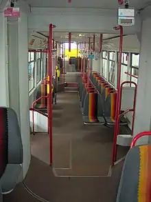 The 03 T is uni-directional and has a low floor over half of its length. The front and rear sections, under which the wheels are placed, have a high floor; the middle section, between these, has a low floor.
