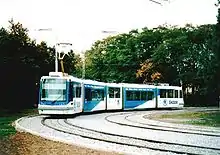 The Škoda 05 T, also known as Škoda Vektra (Velkokapacitní tramvaj (High-capacity tram)) is a five-carbody-section low-floor tram which was developed by Škoda Transportation and based on the Škoda 03 T.