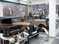 The museum is now divided into three divisions in separate spaces. In Evolution section are the most important products, from the first bicycle, motorcycle, tricycle, first car (1906) with performance of seven hp and other important products up to newest designs. There is also a racing car 720 Spider, 1100 OHC and Super-Sport Ferat. Division Tradition shows cars from different eras, brand participation in motorsport, logo development and personalities and events associated with the brand. In the last section Precision, people can see reconstruction of historical car in various stages of development.