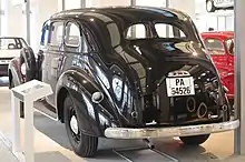 The Type 913 was most commonly available in four basic versions: a 6- or 7-seat limousine, 5-seat saloon, and a 5-seat, 2-door saloon. Other less common versions included a luxury 2-door cabriolet, ambulance, panel van, and a pick-up truck. Production ended in February 1939.[2] Some of the last cars to be produced used the bigger 3,140 cc (191.6 cu in) engine from the Type 924 prototype, which featured overhead valves for the first time, in place of the flathead arrangement used in the earlier engines.