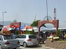 Most of the Muslim Roma population refused to live in the new buildings and authorities eventually decided to give them a specific neighbourhood where they could build the houses they wished.[3] The first buildings to appear were iron shacks donated by the United States. They were planned for temporary use, but some still remain more than 40 years after the earthquake. Most of the Muslim Romani community of Šutka is still facing unemployment and hard living conditions, although some of them manage to build large houses with the money they get as seasonal workers in Western Europe. The Roma houses in Šutka are built with solid materials and have fenced gardens. The area does not give the same impression of marginality as do older Romani neighbourhoods such as Topaana.[2]