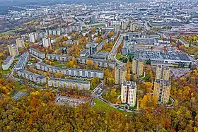 During the interwar period, when Vilnius was under Polish control, the southern part of Žvejai was known as Pióromont;[22] the entire Žvejai area was referred to as Rybaki (Polish for "Fishermen"); modern Šiaurės miestelis had been called Plac broni (Polish for the "Military training ground"); and the old placename of Derewnictwo, dating back to the times of the Polish–Lithuanian Commonwealth, applied to the area north of Tuskulėnai Manor.[24]