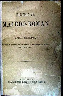On 22 July 1900, Mihăileanu was assassinated by the Bulgarian SMAC komitadji Stoyan Dimitrov in Bucharest.[2] His assassination created a diplomatic crisis between Romania and Bulgaria. An outcry of public opinion followed, tributes to Mihăileanu were published in the press and letters of support were sent to his place of birth describing him as a martyr of Romanianism. A play and several poems were dedicated in his memory. On 30 October, a Romanian court sentenced everyone involved in the plot both captured and in absentia to life in prison. In 1901, Mihăileanu's Aromanian–Romanian dictionary was published, written in such a way so as to enrich the Aromanian language with specially modified Romanian words.[1]