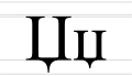 The letter Dzhe was first used in the 15th-century Romanian Cyrillic alphabet, as a modified form of the letter ч.[1] Serbian scribes began using it in the 17th century.[2] Vuk Karadžić included it in his Cyrillic script reform, when the letter entered widespread use.[1]