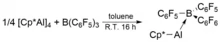 [Cp*Al] is able to act as an atypical exotic ligand in donor-acceptor type bonds. For example, mixing [Cp*Al]4 with the Lewis acidic B(C6F6)3 forms the Al-B donor-acceptor type bond, and results in the synthesis of the adduct [Cp*Al-B(C6F6)3].[14] Analogous main-group complexes that have been synthesised and characterised include dialane complexes [Cp*Al-Al(C6F5)3][15] and [Cp*Al-Al(t-Bu)3],[16] and group 13-group 13 complexes [Cp*Al-Ga(t-Bu)3].[16]