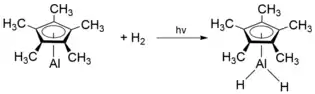 When isolated in a solid H2 doped Ar matrix, monomeric Cp*Al has shown to form the hydride species H2Cp*Al upon exposure to H2 and photolysis with a Hg lamp:[9]