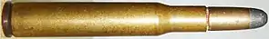 The .30-03 Springfield (7.62×65mm) was a short-lived cartridge developed by the United States in 1903, to replace the .30-40 Krag in the new Springfield 1903 rifle. The .30-03 was also called the .30-45, since it used a 45 grain (2.9 g (0.10 oz)) powder charge; the name was changed to .30-03 to indicate the year of adoption.[2] It used a 220 grain (14 g (0.49 oz)) roundnose bullet. It was replaced after only three years of service by the .30-06, firing a spitzer bullet giving better ballistic performance.