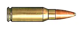 The .308×1.5" Barnes is a wildcat cartridge based on the .308 Winchester (7.62×51mm NATO). The cartridge is similar to the 7.62×39mm Russian (M43) cartridge though it outperforms the Soviet cartridge.[2] It was designed by Frank C. Barnes in March 1961 by shortening the .308 Winchester to 1.5 in (38 mm) and giving it a shoulder angle of 20° (α=40°) similar to the parent cartridge.