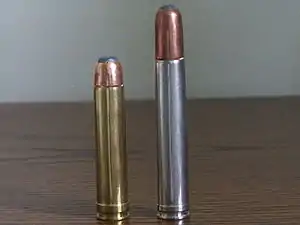 The .458×2-inch American is a straight, belted, .458 caliber (11.6 mm) big-bore cartridge designed by Frank Barnes. It is based on the .458 Winchester Magnum shortened to 2-inch (51 mm).[1]