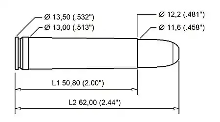| Bullet diameter | .458 in (11.6 mm) |