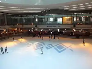 In addition to its office space and shopping areas, it includes a full-size indoor ice skating rink, a physical fitness centre, a major bus terminal (the Downtown Terminus) serving RTL city and commuter buses to Longueuil, Brossard and other South Shore communities, and links to other underground city buildings, Central Station, Lucien L'Allier Station and the Bonaventure Metro station.