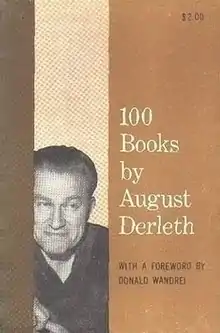 100 Books by August Derleth is a bibliography of books by American author August Derleth. It was released in 1962 by Arkham House in an edition of 1,225 copies. Approximately 200 copies of the edition were bound in pictorial boards for libraries (the edition in boards was issued without dustwrapper). The foreword is by Donald Wandrei.