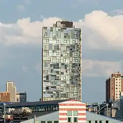 100 Eleventh Avenue is a 23-story residential tower at the intersection of 19th Street and Eleventh Avenue (the West Side Highway) in the borough of Manhattan, New York City, New York. The building is described as "a vision machine"[3] by the architect Jean Nouvel. It has one of the most technologically advanced curtain wall systems in New York City, but also refers to West Chelsea masonry industrial architectural traditions.