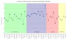 As part of its licence agreement with Jazz FM, Ofcom stated that Jazz FM had to dedicate at least 50% of the daytime output before 19:00 to jazz, and that the music "must sit well with the label jazz".[59] However, from 15 November 2004, as part of an agreement with GMG, Ofcom agreed to allow GMG to change the format, with the 50% jazz in daytime requirement dropped. John Myers said, "The policy we are going on is ratings by day, reputation by night. Jazz is much more of a night-time listen so the changes fit well." As a result, jazz was increased from 40 to 45 hours[66] and the Dinner Jazz programme hours were increased from two to three.[67][68]